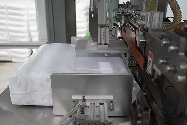 - La envasadora de pañales desechables tiene un dispositivo de empuje de cuatro cabezales, que reduce la velocidad de operación y le da al equipo una mayor estabilidad.