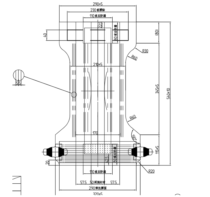 - Laminación ultrasónica de tejido de tres piezas